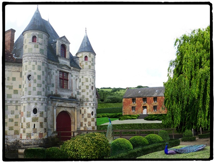 The castel of Saint Germain de Livet, with in the background the
